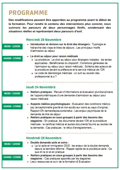 Du 23 au 25 novembre : formez-vous au « droit au séjour pour raison médicale »