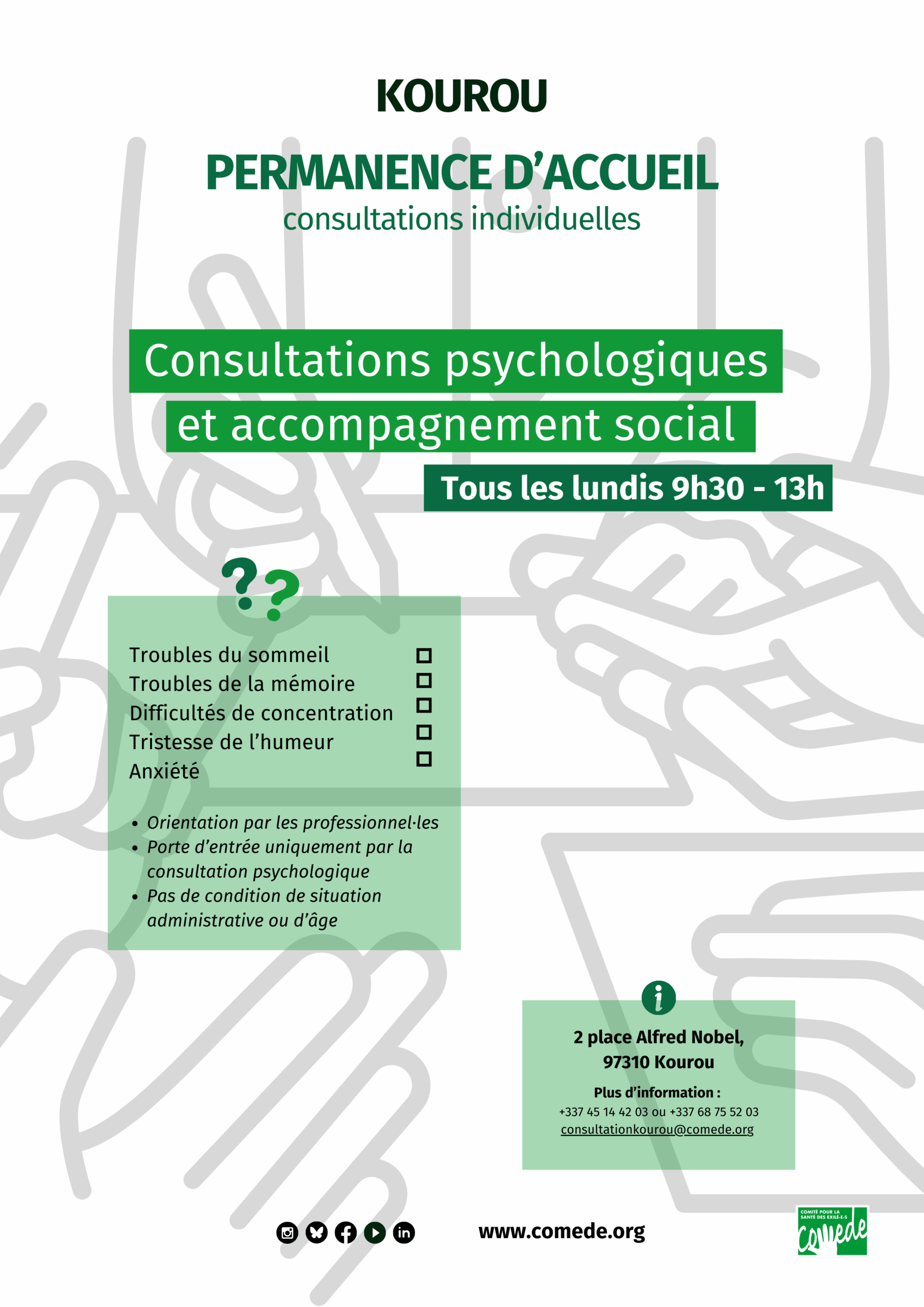 Plus d’information : consultationkourou@comede.org
