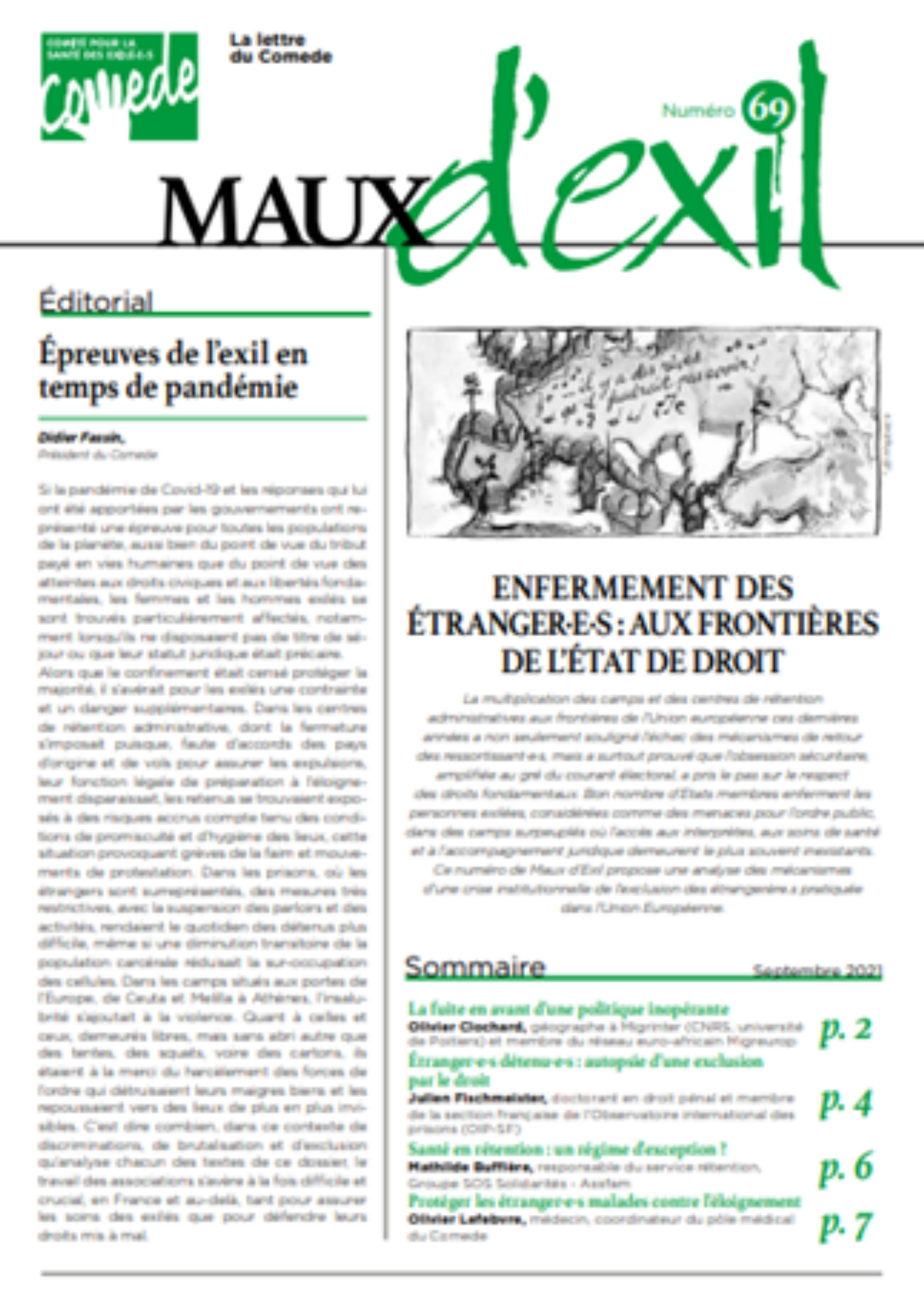 La multiplication des camps et des centres de rétention administratives aux frontières de l’Union Européenne ces dernières années a non seulement souligné l’échec des mécanismes de retour des ressortissant·e·s, mais a surtout prouvé que l’obsession sécuritaire, amplifiée au gré du courant électoral, a pris le pas sur le respect des droits fondamentaux. Bon nombre d’Etats membres enferment les personnes exilées, considérées comme des menaces pour l’ordre public, dans des camps surpeuplés où l’accès aux interprètes, aux soins de santé et à l’accompagnement juridique demeurent le plus souvent inexistants. Ce numéro de Maux d’Exil propose une analyse des mécanismes d’une crise institutionnelle de l’exclusion des étranger.ère.s pratiquée dans l’Union Européenne.