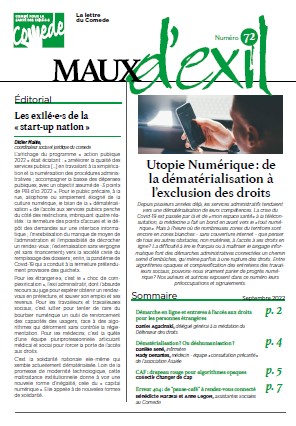 Depuis plusieurs années déjà, les services administratifs tendaient vers une dématérialisation de leurs compétences. La crise du Covid-19 est passée par là et de « mon espace santé » à la téléconsultation, la médecine a fait un bond en avant vers le « tout numérique ». Mais à l’heure où de nombreuses zones du territoire sont encore en zones blanches – sans couverture internet – que penser de tous les autres obstacles, non matériels, à l’accès à ses droits en ligne ? La difficulté à lire le français ou à maîtriser le langage informatique font des démarches administratives connectées un chemin semé d’embûches, qui mène parfois à une rupture des droits. Entre algorithmes opaques et complexification des entretiens des travailleurs sociaux, pouvons-nous vraiment parler de progrès numérique ? Nos auteurs et autrices exposent dans ce numéro leurs préoccupations et signalements.
